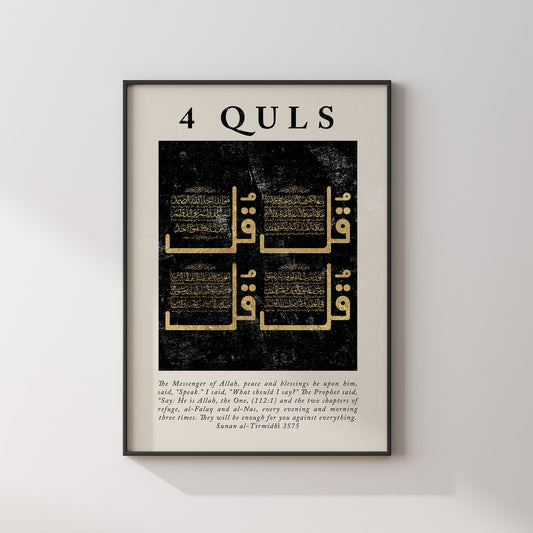 4 Quls Islamic Wall Art - Black & Gold Arabic Calligraphy | NSP