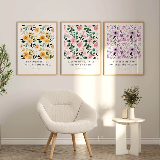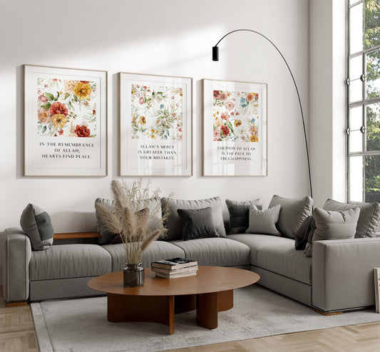 Inspiring Islamic Quotes Gallery Wall Set - Floral Islamic Wall Art - Muslim Home Decor