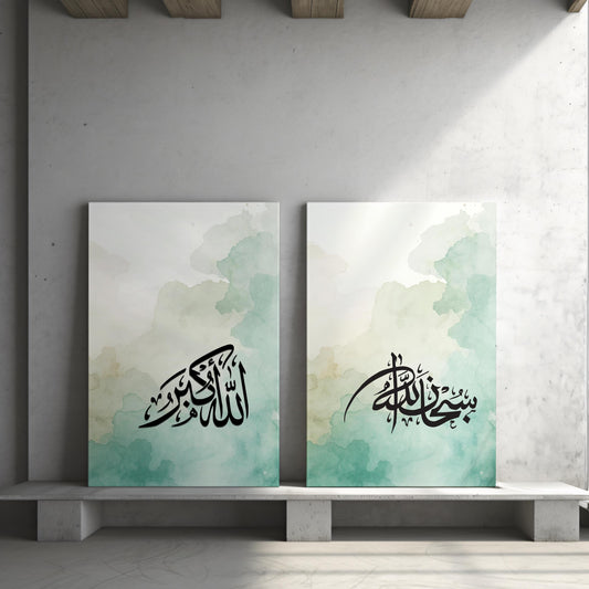 Islamic Wall Art Set - Arabic Calligraphy & Watercolor