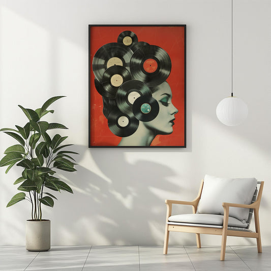 Vinyl Records Wall Art Vintage Collage - DJ Retro 1950s Home Decor