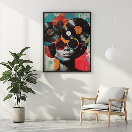 Vinyl Record Wall Art - Vintage Colorful DJ Collage Decor