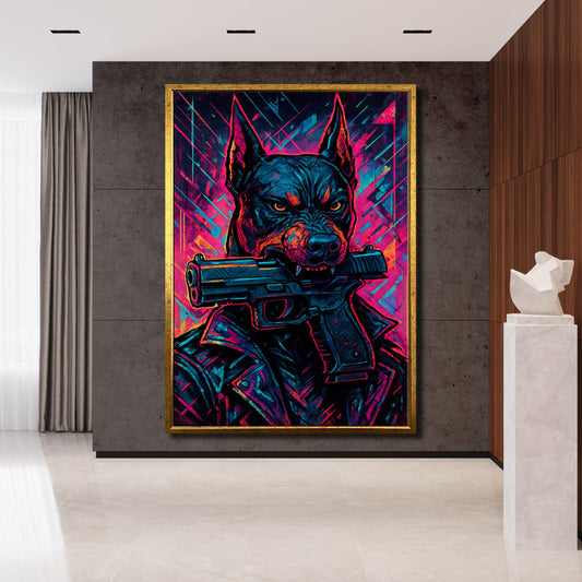 Fearless Neon Doberman - Cyberpunk Canvas Wall Art