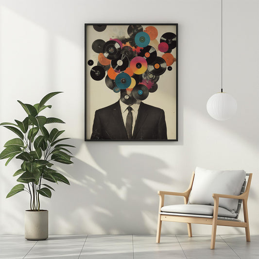 Vinyl Records Wall Art - DJ Retro Collage, Man in Suit