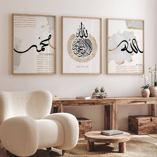 Modern Islamic Wall Art Set of 3 - Islamic Calligraphy Gallery Wall Decor