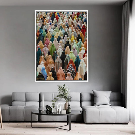 Colorful Islamic Prayer Gathering Wall Art - Muslim Women in Hijab