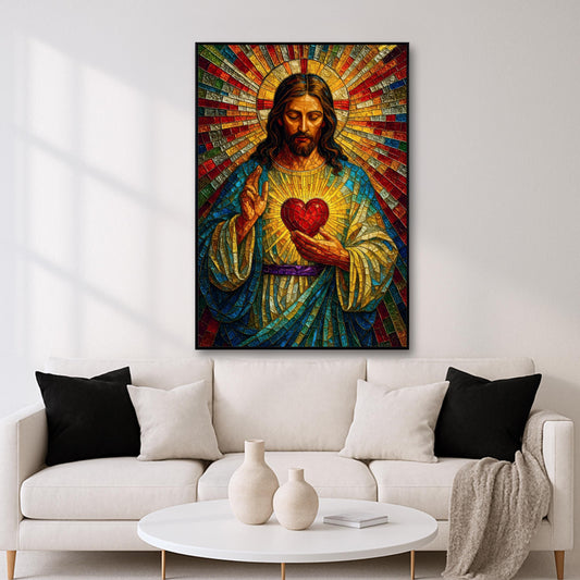 Sacred Heart of Jesus Mosaic Wall Art – Catholic Stained Glass Decor