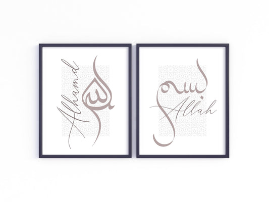 Moroccan Calligraphy Wall Art Set of 2: Bismillah & Allah | Minimal