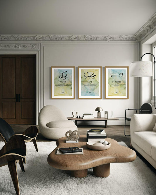 Quran Quotes Wall Art Set of 3: Sabr, Shukr, Tawakkul