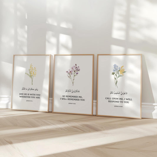 Quran Quotes Wall Art Set (3) - Islamic Wall Decor | Floral Islamic
