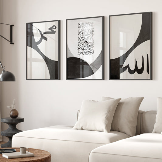 Minimal Islamic Wall Art Set of 3 Prints - Arabic Calligraphy Posters