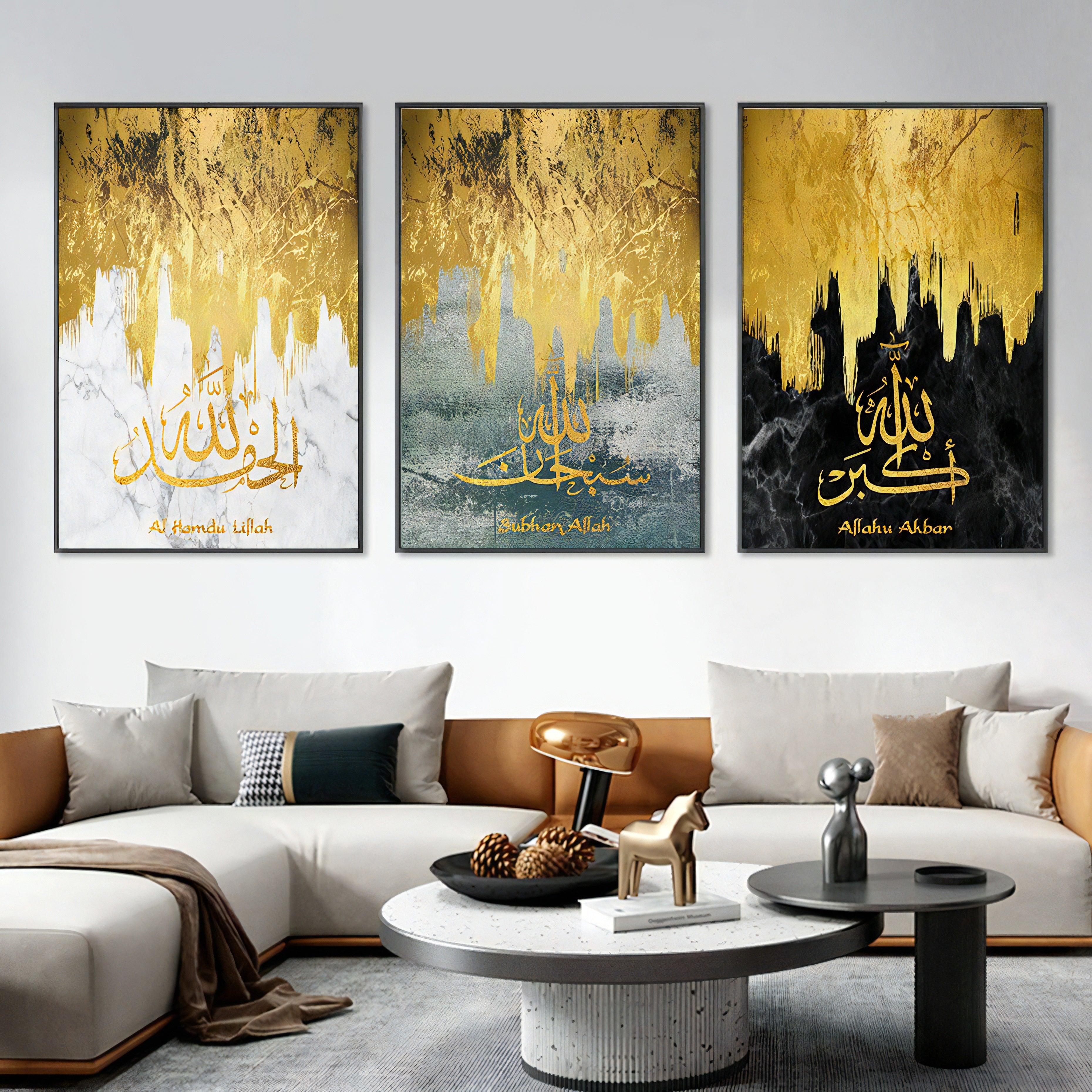 3-Piece Islamic Poster Set - Abstract Dhikr Set - Arabic Calligraphy Wall Art