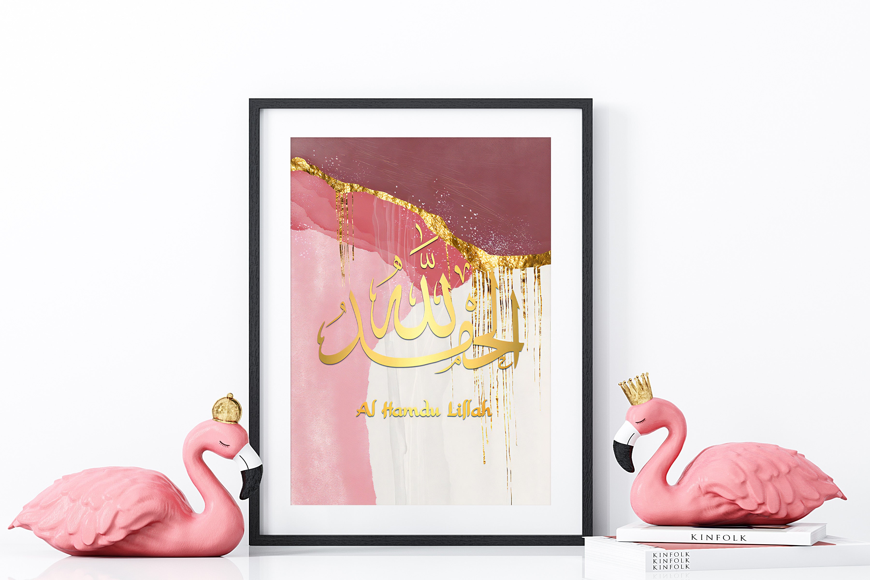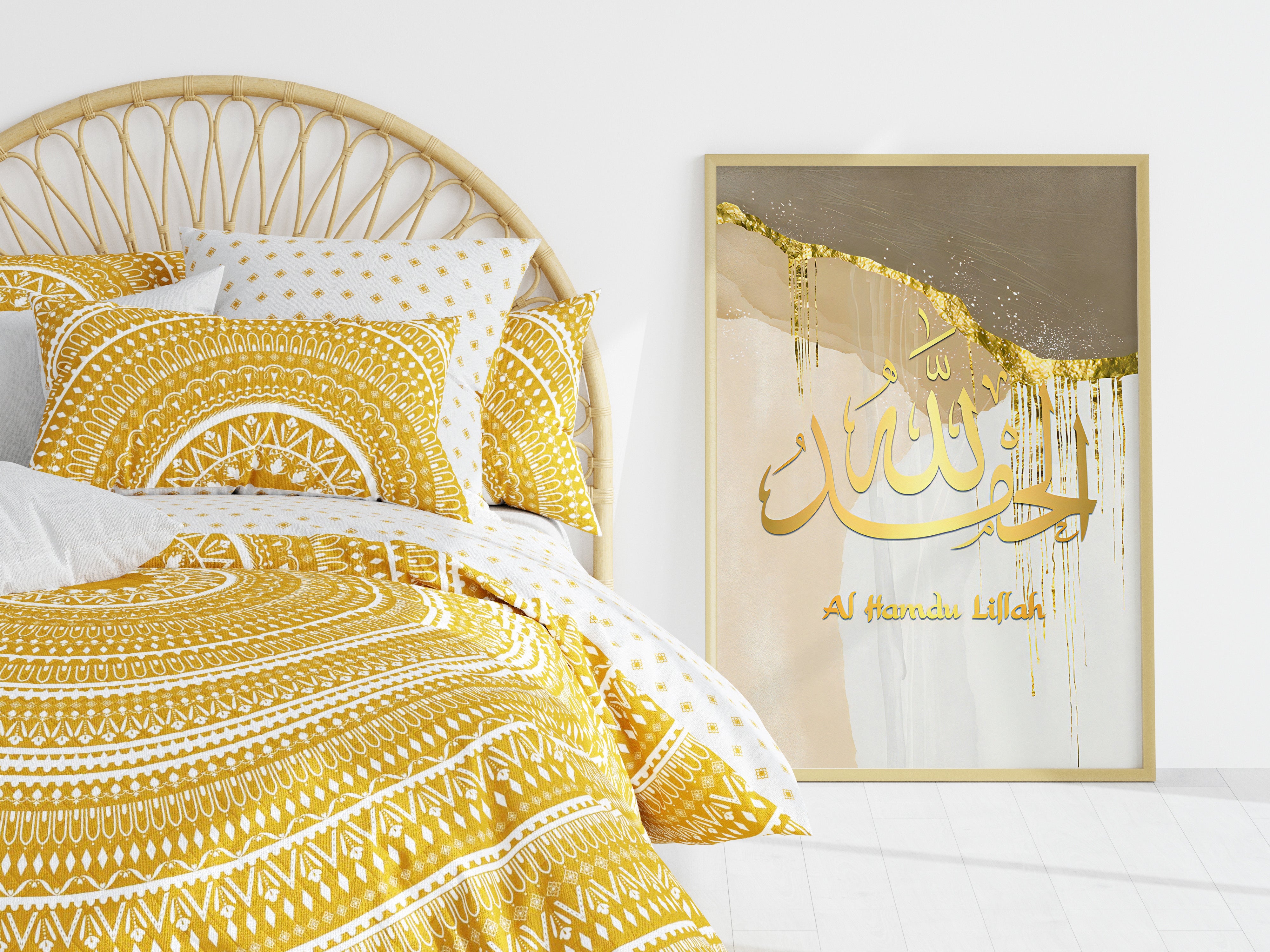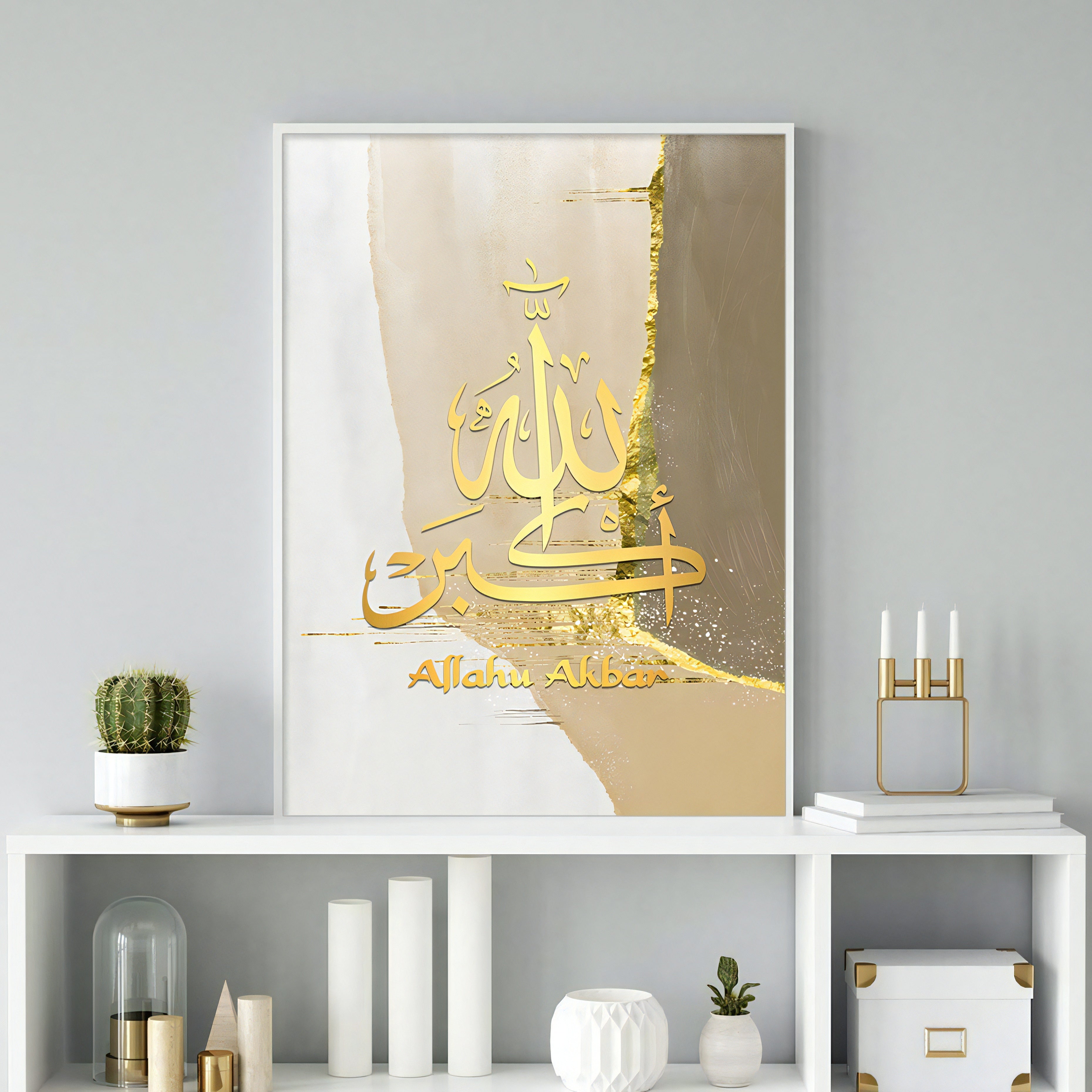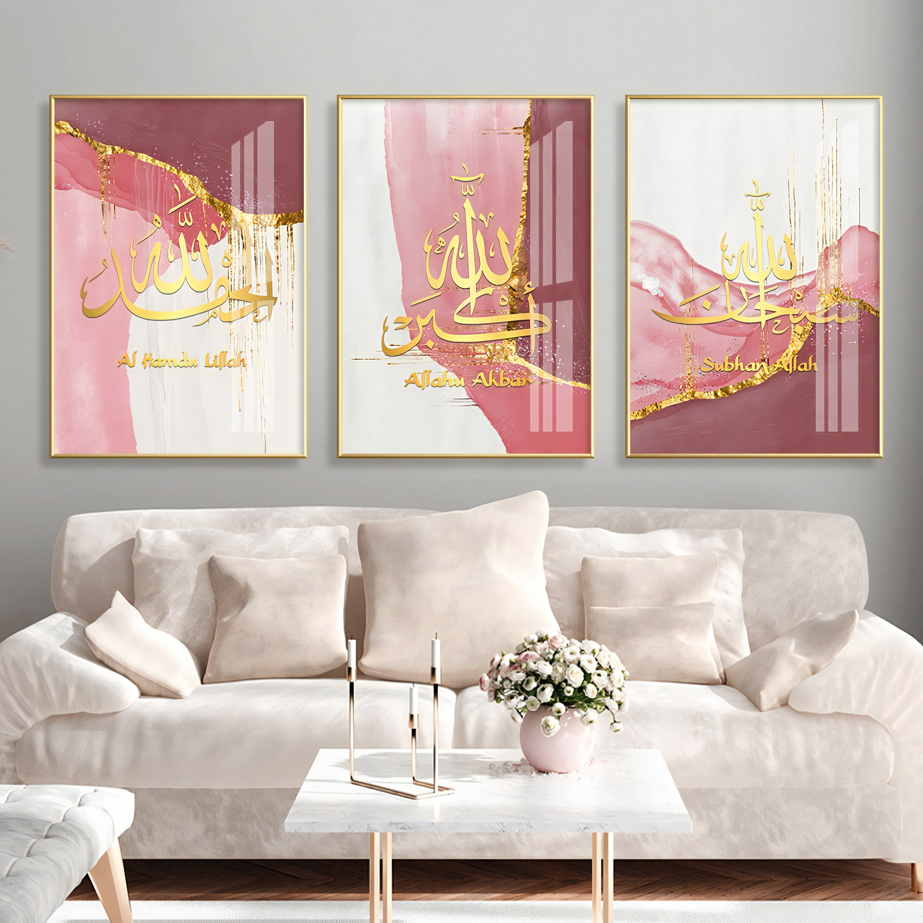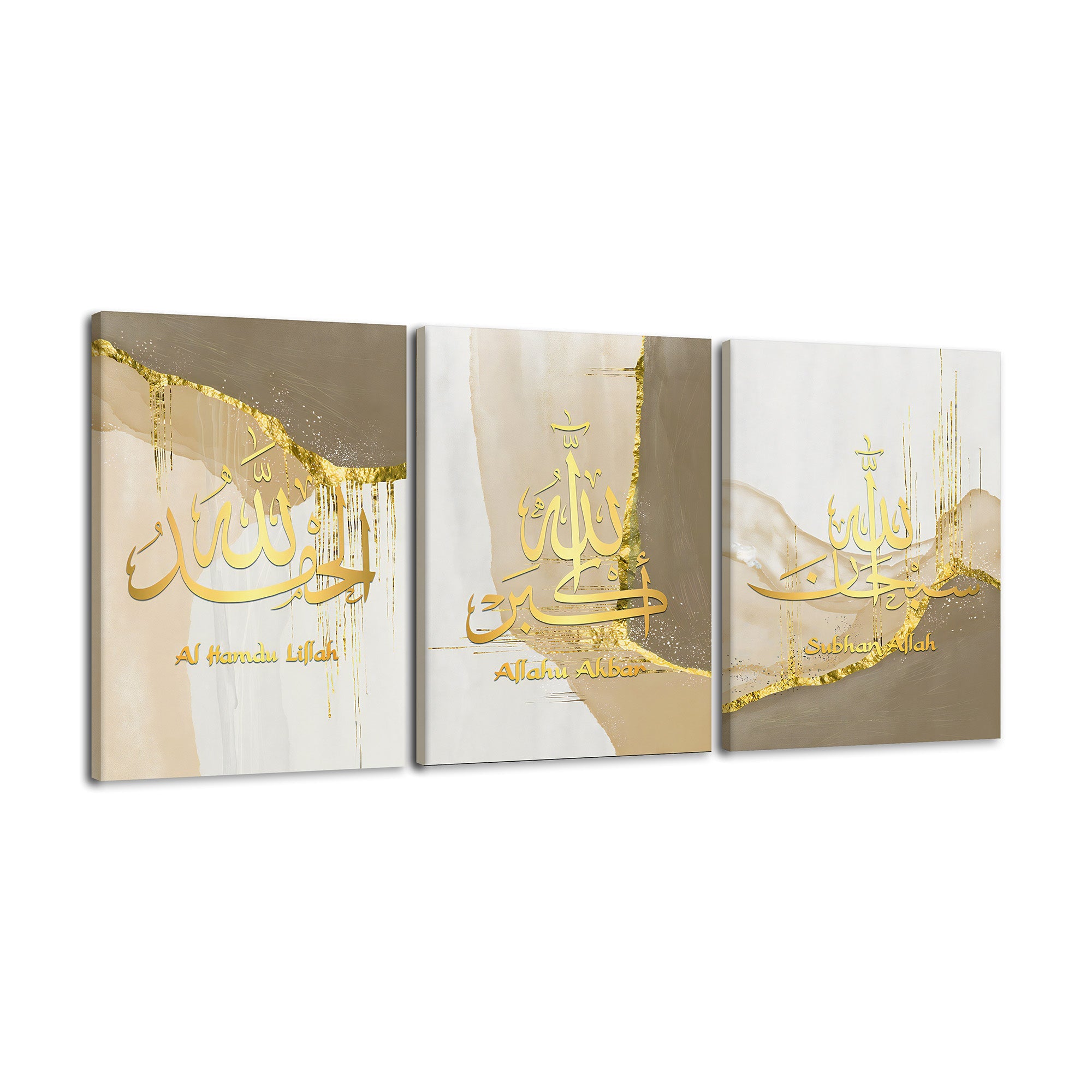 3-Piece Islamic Poster Set - Abstract Golden Dhikr Set - Arabic Calligraphy Wall Art