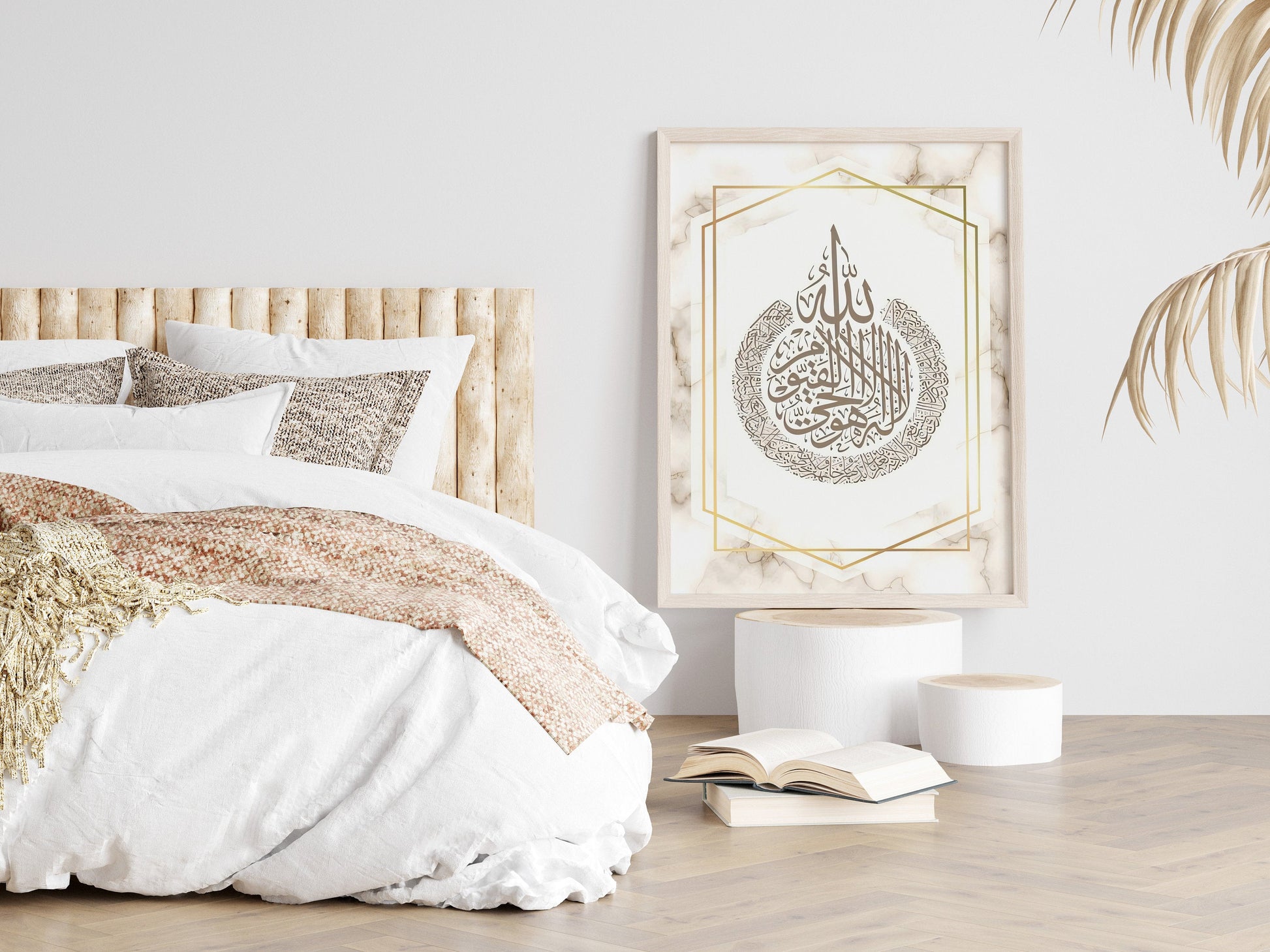 Elevate your living space with our Set of 3 Abstract Gold Islamic Wall Art, featuring the sacred names Allah and Muhammed alongside the revered Ayat al-Kursi. This collection beautifully merges abstract gold aesthetics with Islamic values, creating a stunning visual representation of faith and elegance.