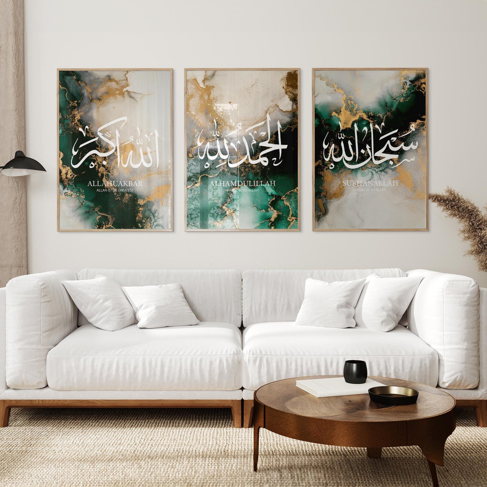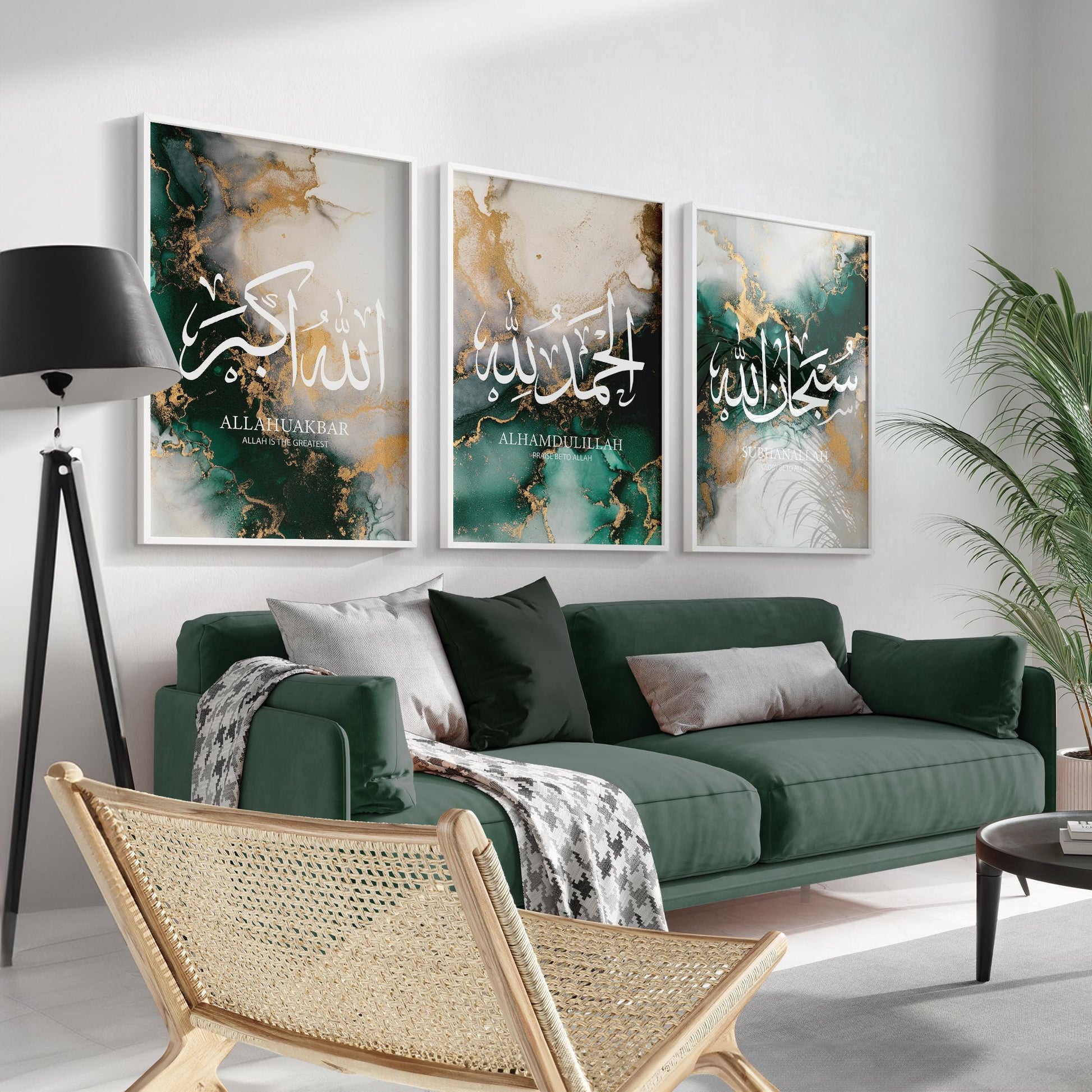 Enhance your home with this stunning Abstract Green Islamic Wall Art Set, featuring the powerful words "Subhanallah," "Alhamdulillah," and "Allahuakbar." The vibrant green hues and modern abstract design bring a fresh, peaceful vibe to any room. Ideal for living rooms, prayer spaces, or offices, this set adds a touch of spiritual elegance to your decor. Thoughtfully crafted, it makes a meaningful gift for anyone who appreciates Islamic art with a contemporary twist.