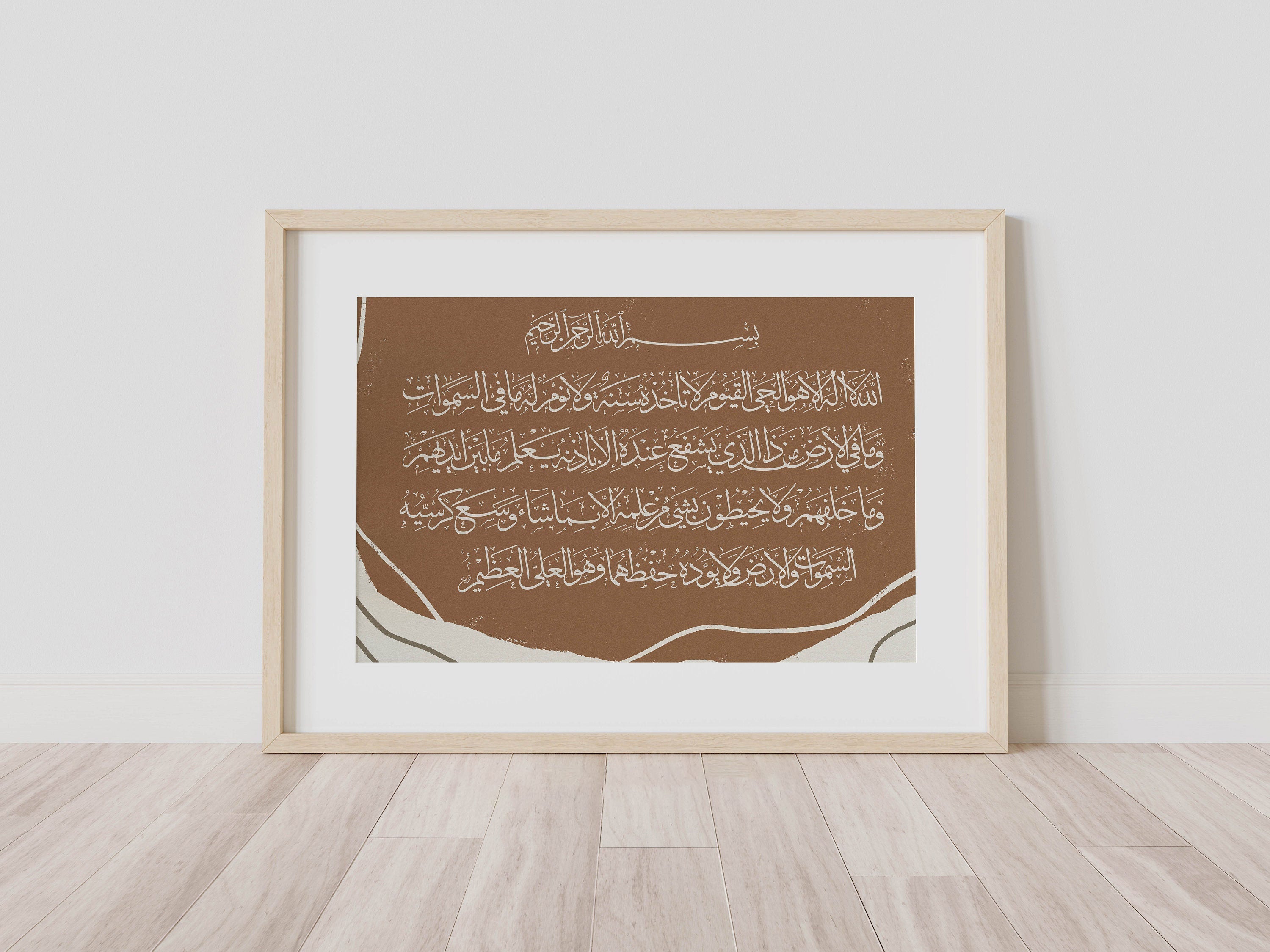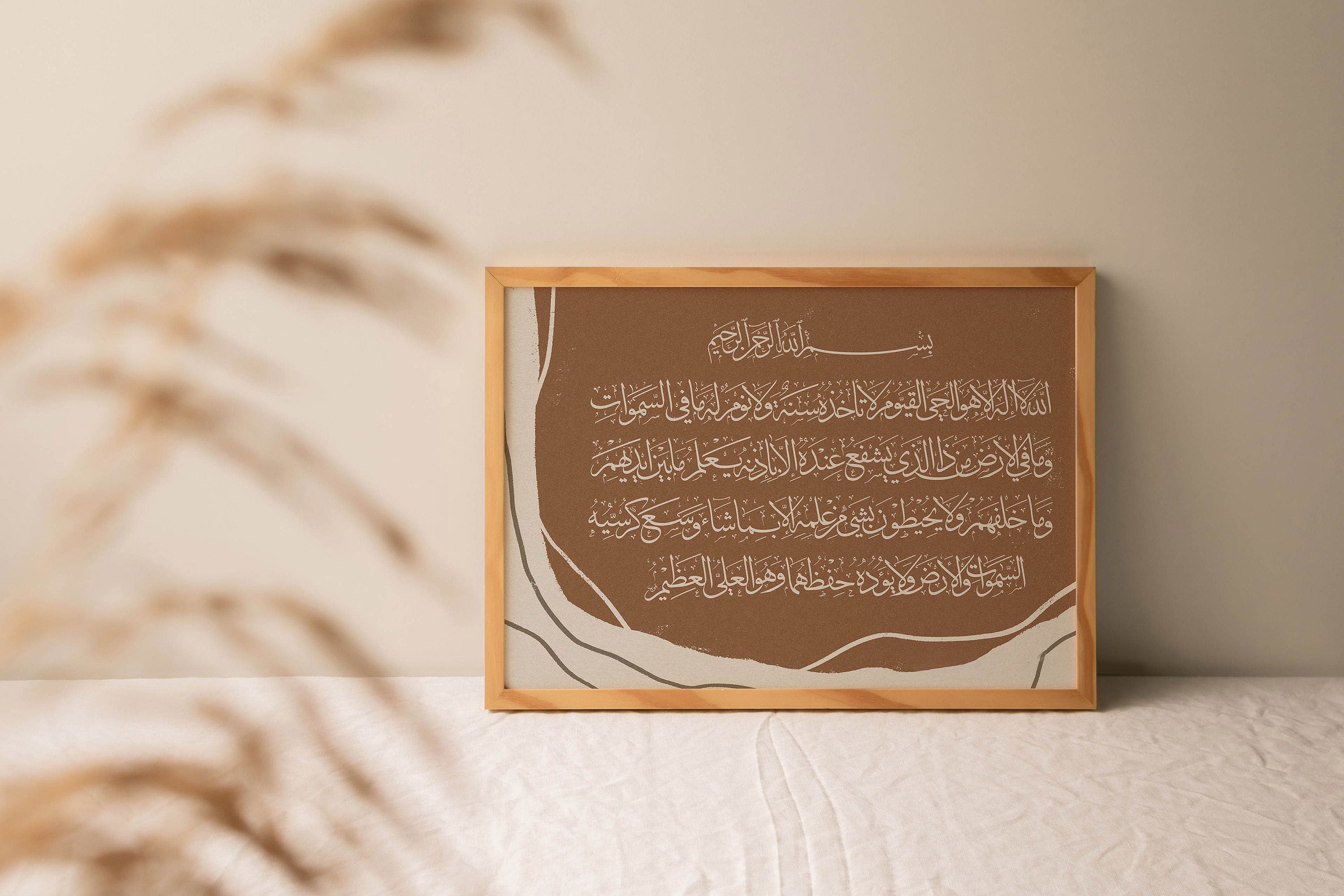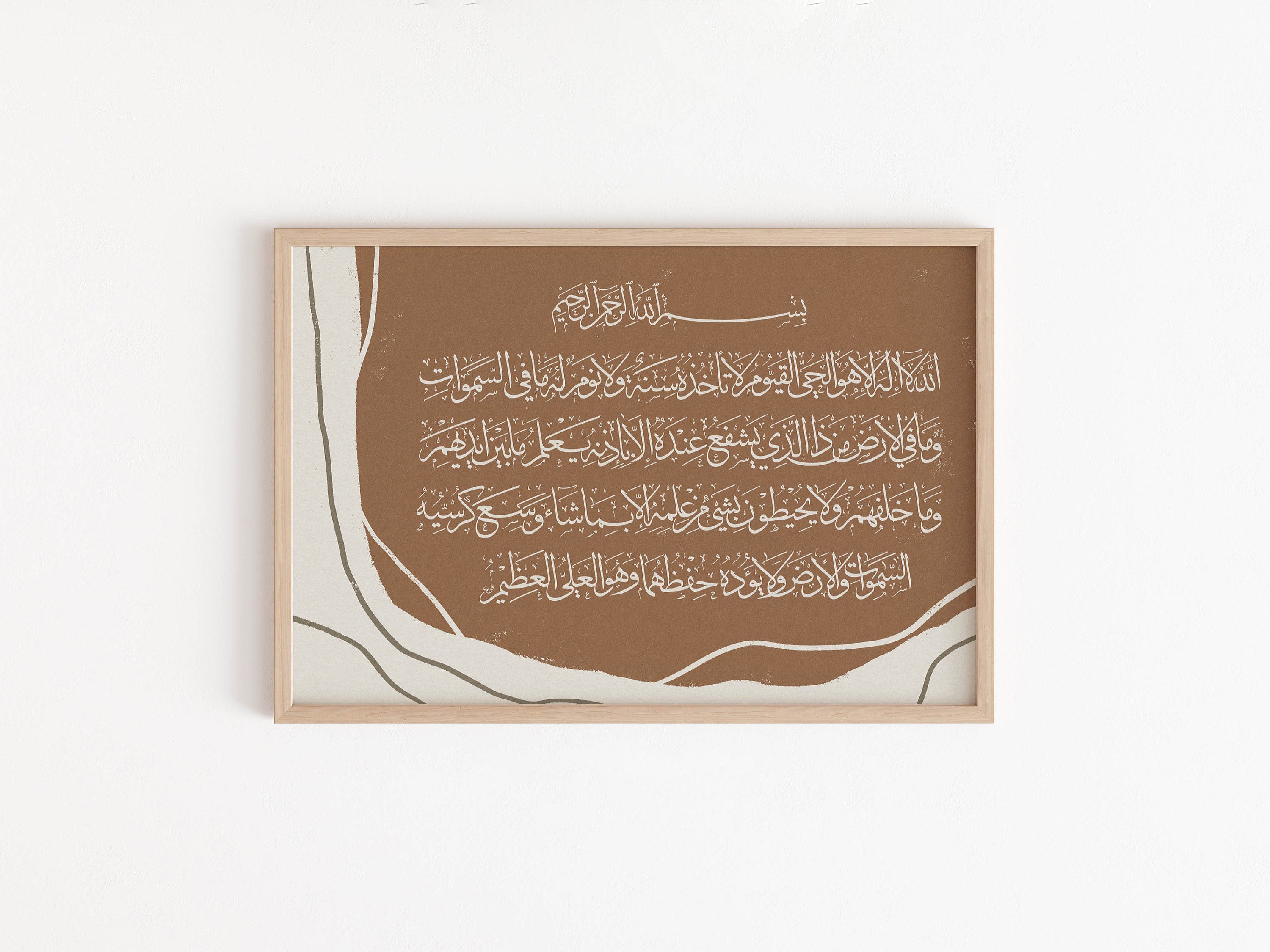 Arabic Calligraphy Ayatul Kursi Print | Abstract Boho Earthy Tones | Islamic Interior Decor