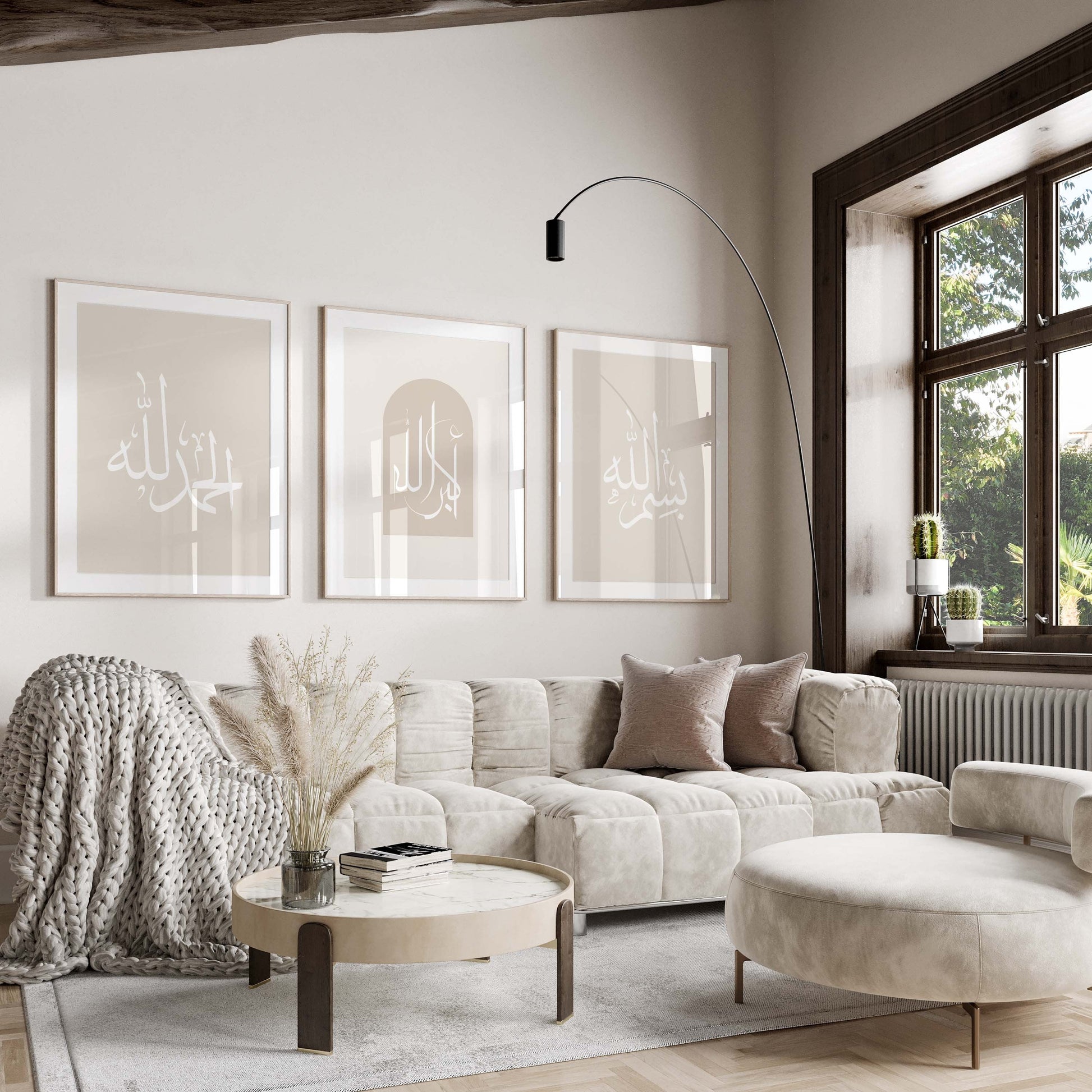 Bismillah Alhamdulillah Islamic Wall Art Set - Minimal Islamic decor - Neutral Arabic Calligraphy Posters