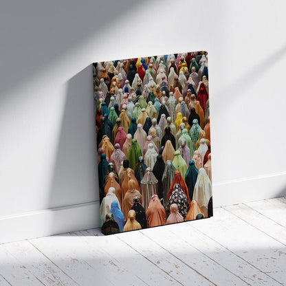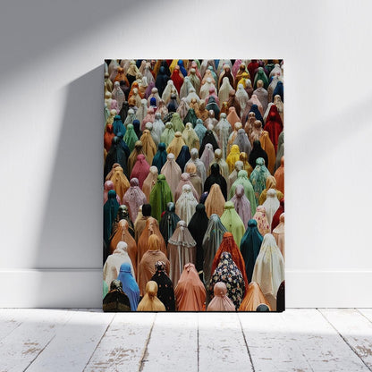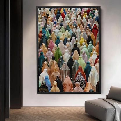 Colorful Islamic Prayer Gathering Wall Art - Muslim Women in Hijab