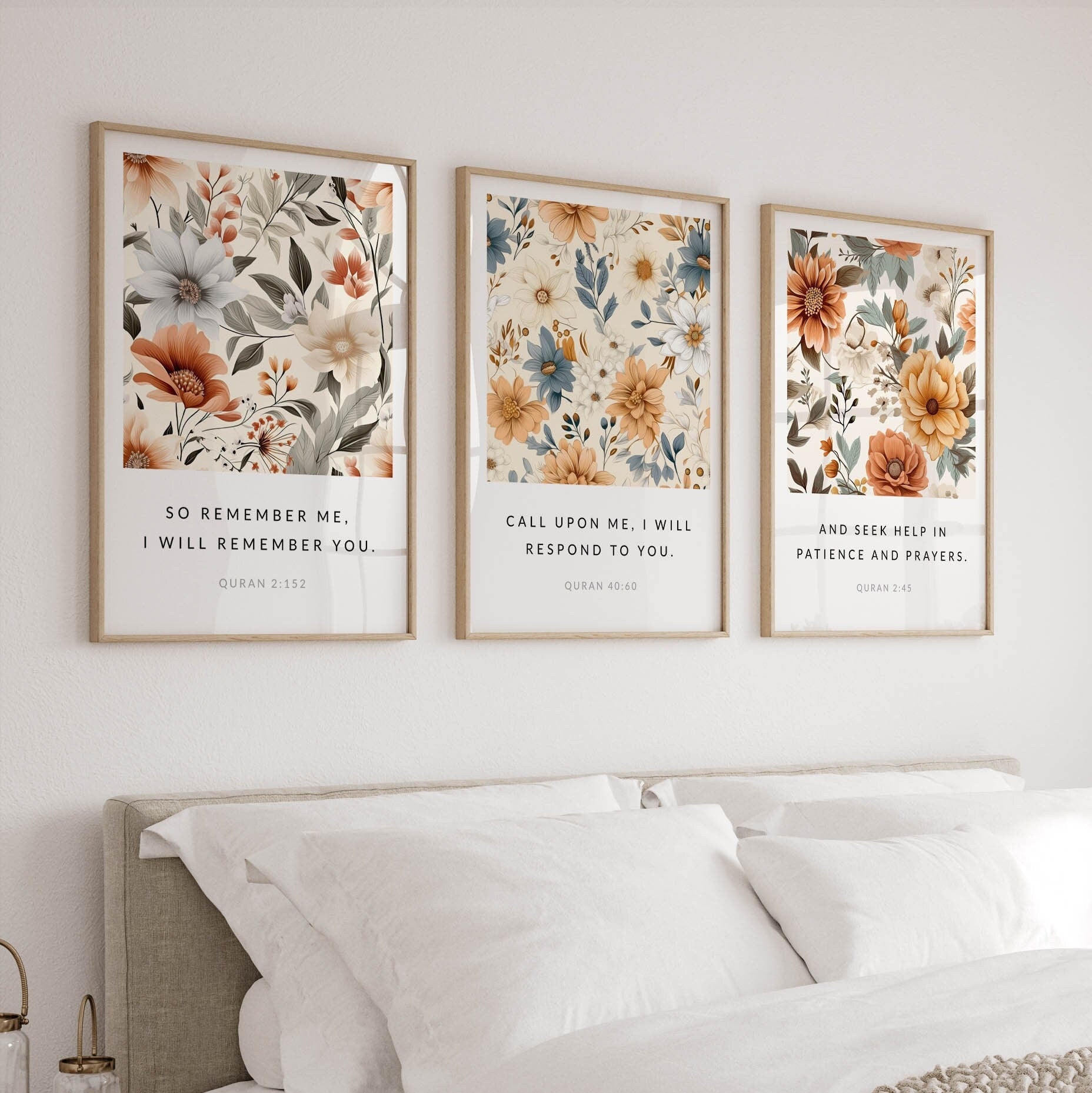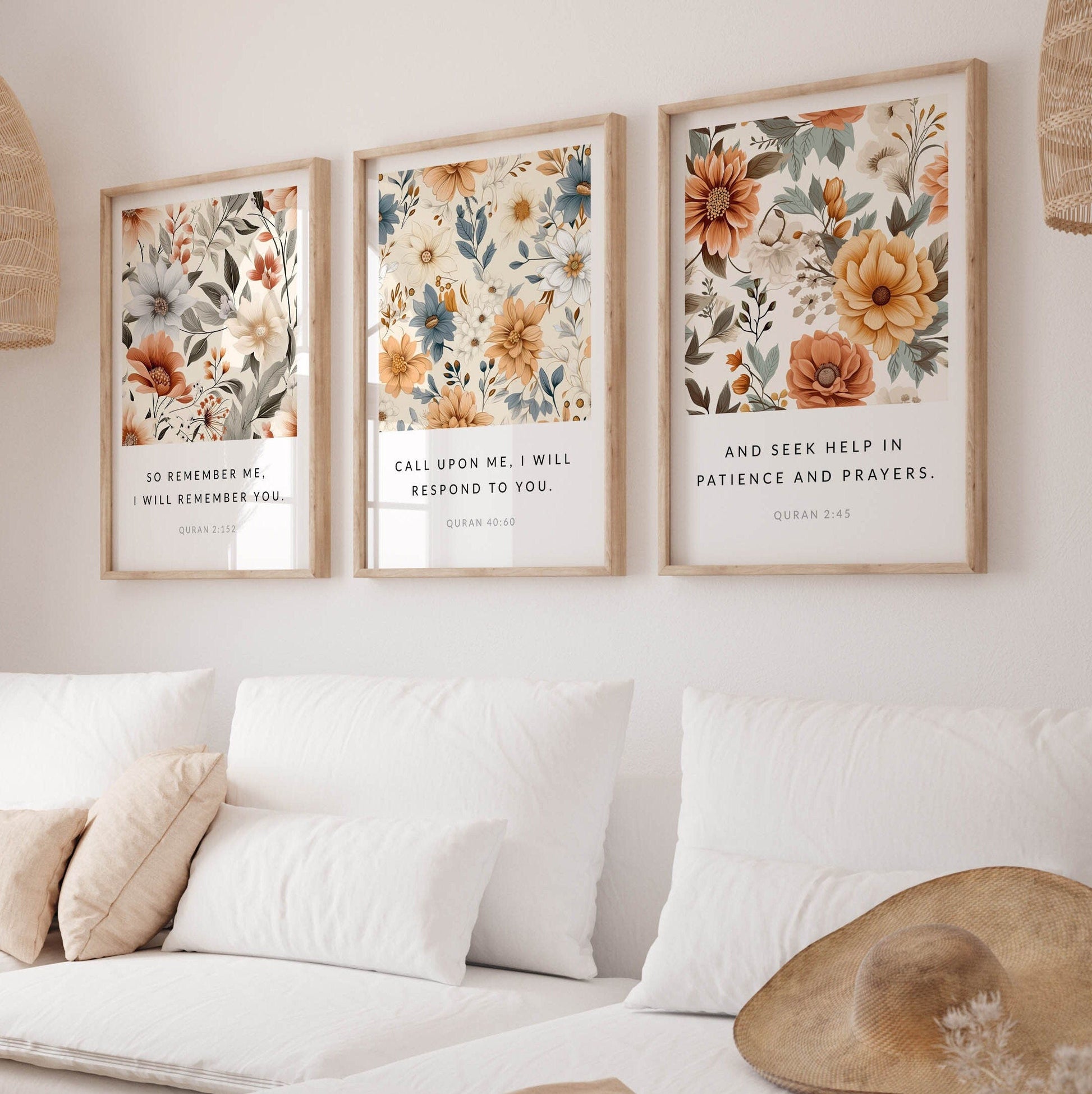Islamic Quotes Wall Art - Modern Muslim Home Decor - Floral Islamic Wall Decor