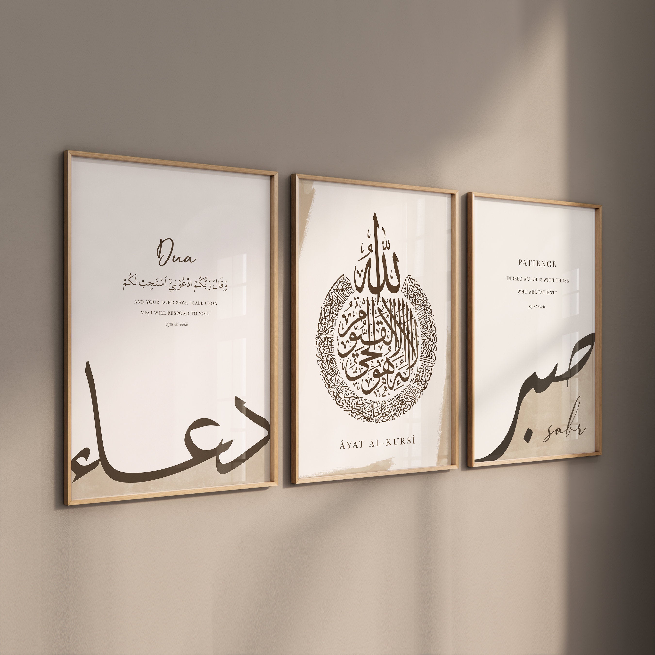 Islamic Wall Art Set - Ayatul Kursi Sabr Dua - Arabic Calligraphy